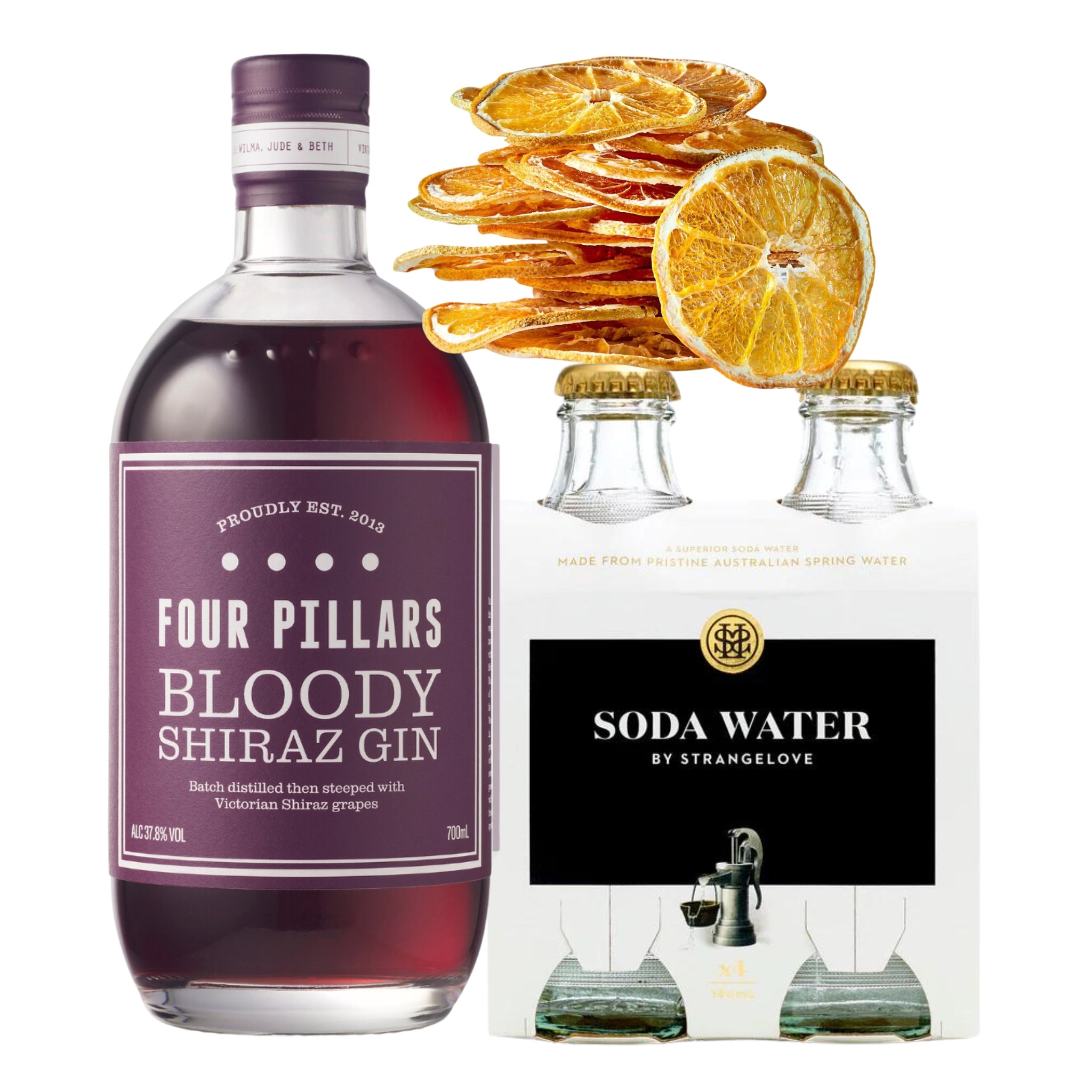 Bring a bold, fruity twist to your cocktail repertoire with the Four Pillars Bloody Shiraz Gin. Infused with locally sourced Shiraz grapes, this gin boasts rich berry flavours and vibrant colour. Paired with Strangelove Soda Water and Dardimans dried orange slices, this pack offers a refreshing and easy-to-make cocktail experience. Ideal for gin lovers looking for something a little different, this gift pack makes every occasion special.