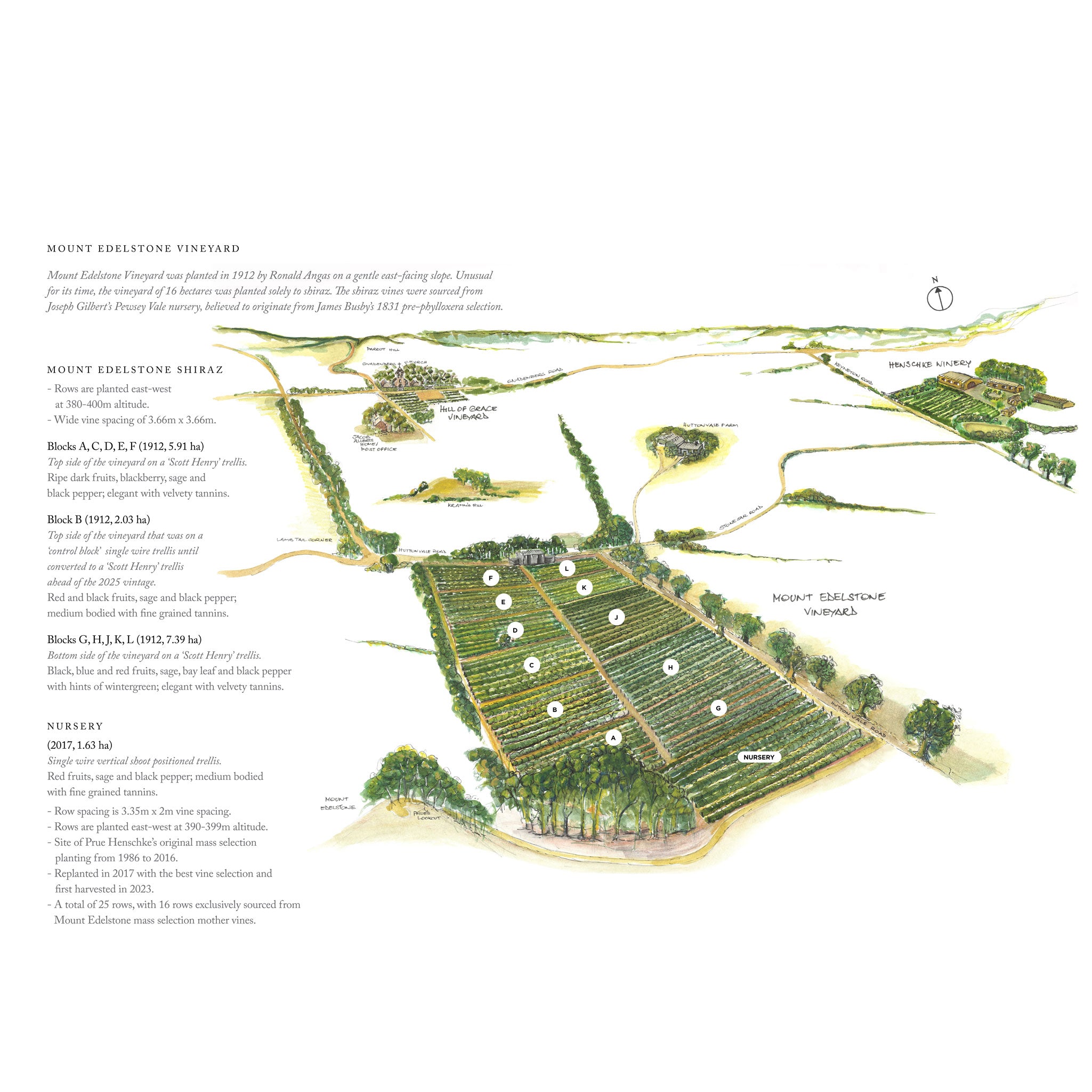 Henschke is one of Australia's most prestigious and historic wineries, with over 153 years and six generations of family ownership. Located in Keyneton, South Australia, within the renowned Eden Valley wine region, Henschke has built a legacy of crafting premium wines, including its iconic single-vineyard wines, Hill of Grace and Mount Edelstone. Since 1862, the Henschke family has cultivated exceptional vineyards in the Eden Valley, Barossa Valley, and Adelaide Hills, with a focus on quality, sustainability, and innovation.
